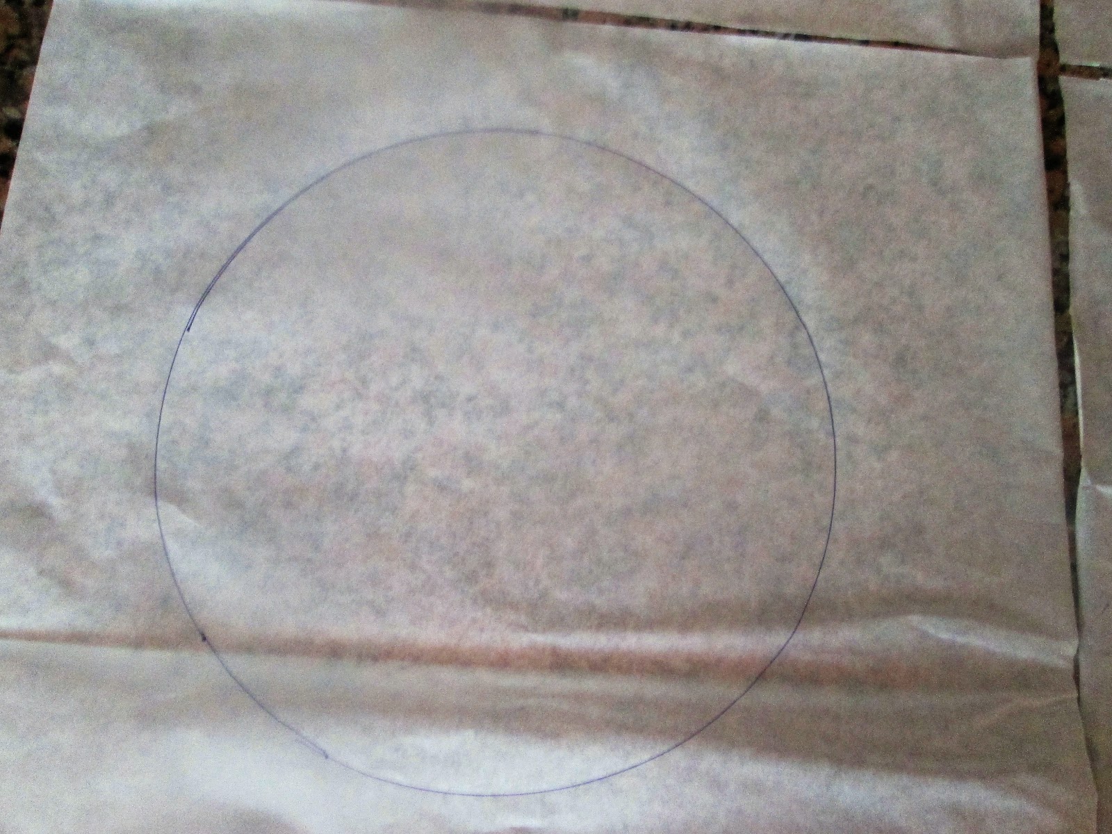 Cortar cuadrados en papel mantequilla. Al centro dibujar círculos de 20 cms.